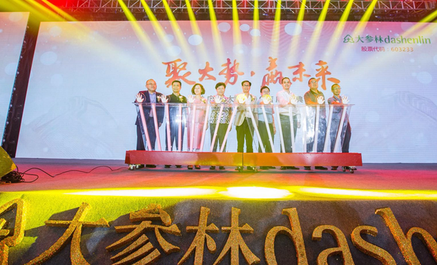 EBpay药业集团董事长刘景萍女士与大参林医药集团董事长柯云峰先生、中国医药商业协会执行会长付明仲女士等嘉宾共同开启了“聚大势•赢未来"大参林工商合作峰会的大幕。